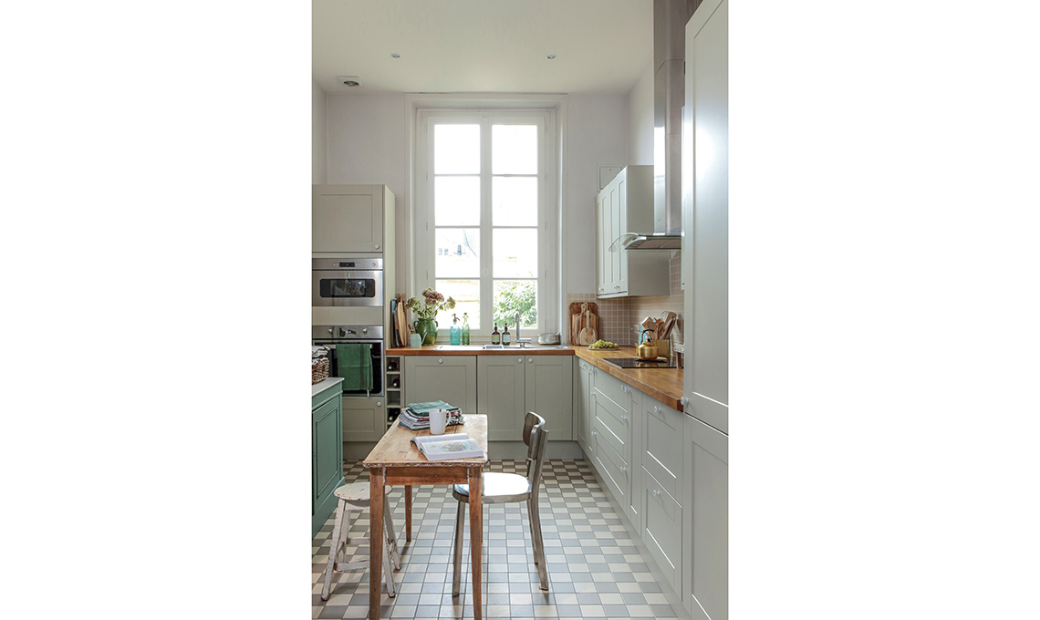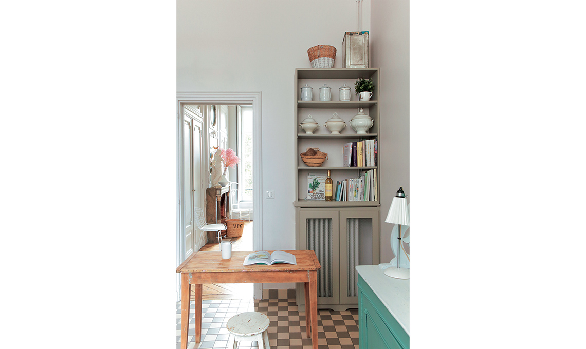 per chi ama le cucine dal sapore tradizionale. Al centro, il tavolino su cui Lilou fa i compiti: il legno, soprattutto quello invecchiato, ha sempre una storia da raccontare.