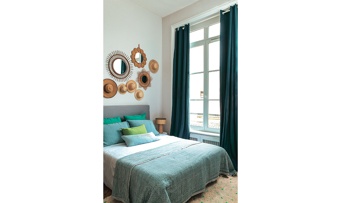 Alexandra, nipote di antiquari, ha il buon gusto nel Dna: spesso riesce a tirar fuori dai vecchi cumuli dei brocante piccoli dipinti a olio raffiguranti paesaggi, che poi mette insieme su una parete. Come qui, nella camera degli ospiti, li libera da passepartout, cornici e vetri e li accosta con un abbinamento tematico ma anche cromatico. I toni? Neutri, perché Alexandra, anche nelle camere, ama i bianchi, i crema e i grigi; il colore è un accento aggiunto con i tessuti di lino, velluto e cotone, meglio se délavé. La biancheria da letto è fondamentale!