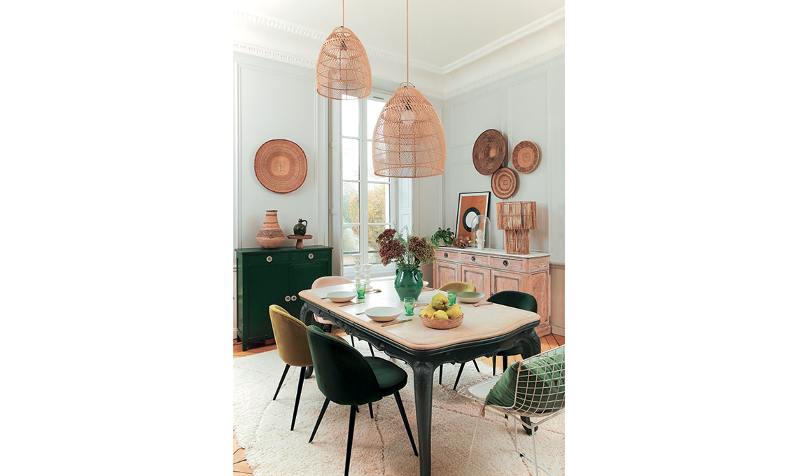Sei in cerca di sospensioni in vimini? Scopri i modelli Wicker e Rope di [HKliving]. Sedie Mauricette [Maisons du Monde] e Bertoia Side Chair [Knoll]. Ceste etniche su oriwaka.net.