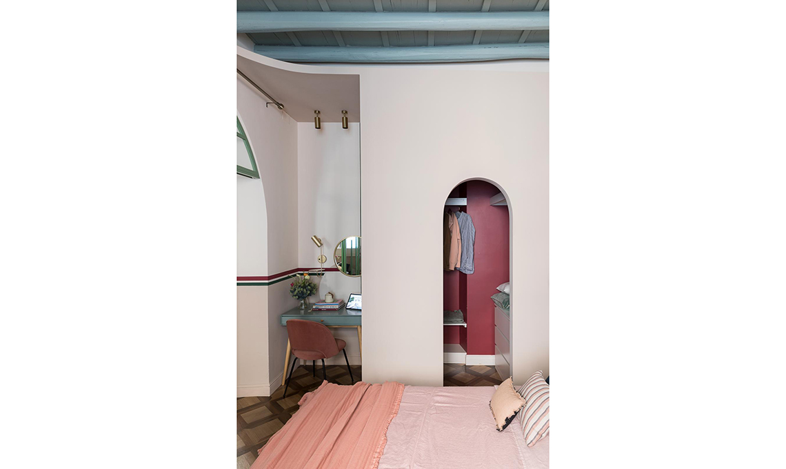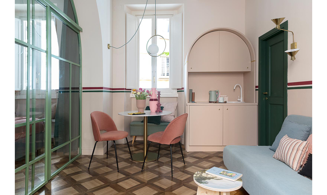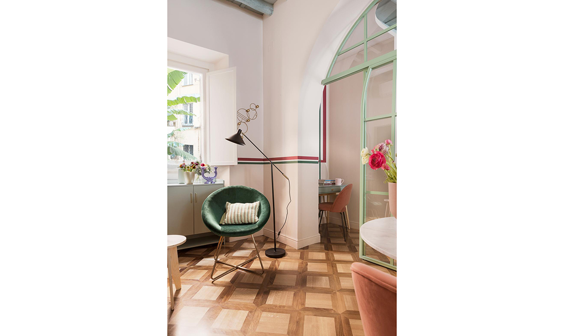 In un palazzo del ’500 a ridosso di piazza Navona c’è un mini appartamento al primo piano con uno stile davvero sorprendente: colorato, moderno e... tutto giocato sulla forma dell’arco. Quando Federica l’ha visto, però, quell’arco non c’era; è emerso abbattendo una parete in cartongesso e di lì è nata l’idea dell’architetto Ilaria Bellia e della interior designer Jelena Grujic di B Studio di fare di quella forma il leitmotiv della casa: vetrato, unisce i due vani e crea una prospettiva; poi torna nella micro cucina, nella doccia, nella cabina armadio.