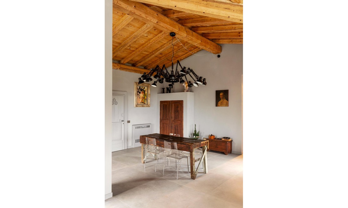La passione dei proprietari per gli oggetti, gli arredi e anche i luoghi con una storia da raccontare è diventata il fulcro del progetto. La ristrutturazione ha valorizzato il patrimonio storico della cascina, rispettando tutti gli elementi originali della struttura emersi durante la ristrutturazione.