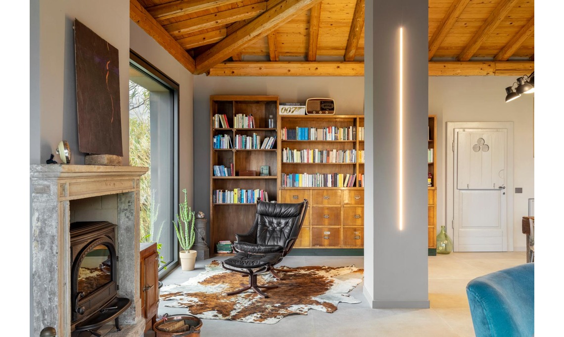 La forza del progetto? Essere riusciti a far convivere antico e nuovo, vintage e moderno. Come? Realizzando una ‘scatola’ dalle tonalità neutre che dà risalto al legno e ai materiali caldi e autentici della casa. E in cui trovano spazio arredi provenienti da viaggi e residenze precedenti, e anche oggetti recuperati e restaurati, di grande fascino.