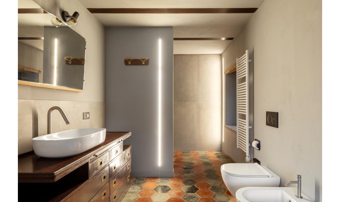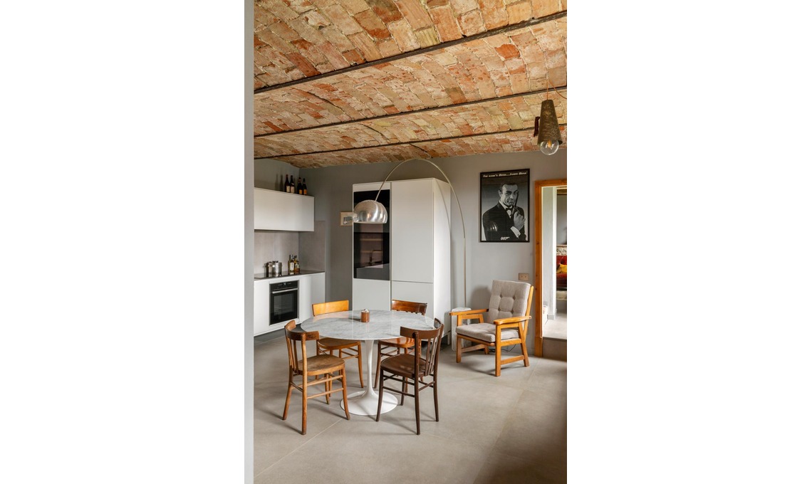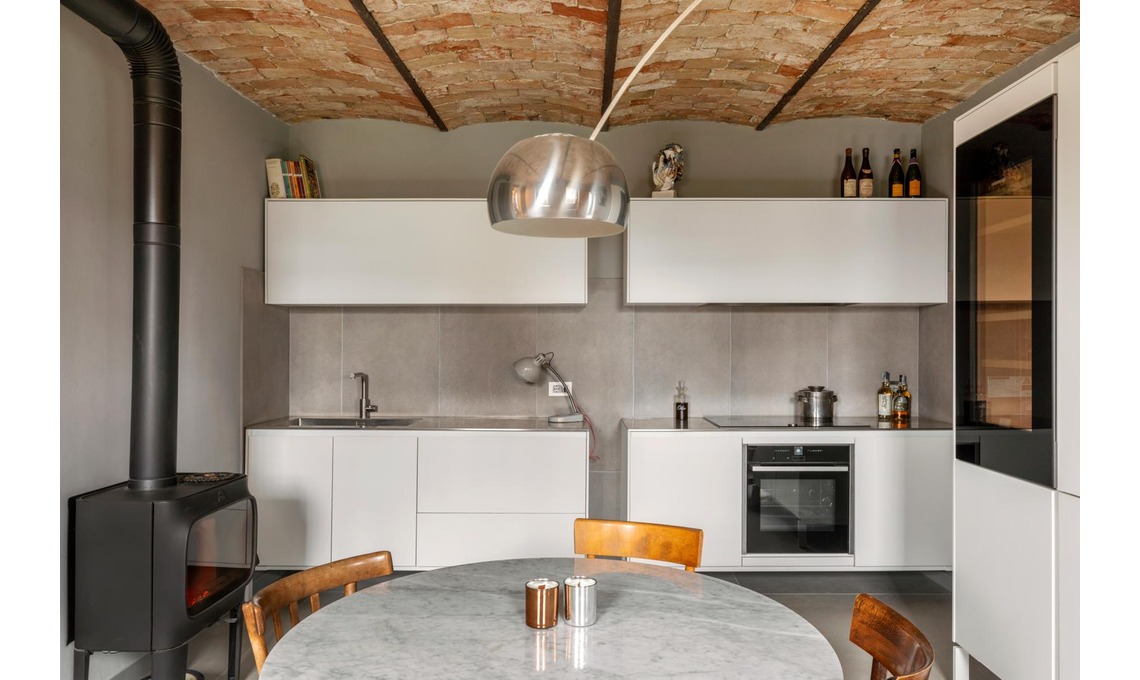 Sono stati rifatti le solette e il tetto, così da recuperare anche il sottotetto che è stato adibito a zona ospiti. All’interno sono stati riportati a vista le pietre e i mattoni nascosti sotto vecchi strati di intonaco: sono da vero colpo di fulmine le voltine che danno carattere all’ambiente cucina!