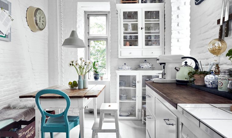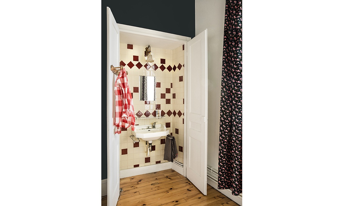 L'idea da copiare? Una nicchia nel muro nella stanza degli ospiti è stata trasformata in un piccolo lusso d'altri tempi, il lavandino in camera. La nicchia non era abbastanza profonda per contenere un vero armadio. Così è nata l’idea: rivestito di piastrelle, attrezzato in stile vintage, questo spazio è diventato una micro-stanza funzionale e sorprendente. Il problema dell’acqua e dello scarico, tra l’altro, è stato risolto con tubature a vista, in perfetto stile con il recupero di stanze d’epoca.
