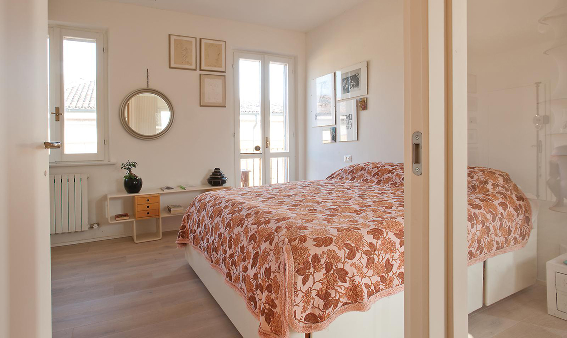 All’ultimo piano di un palazzo ’800 a Mantova, la casa di Giovanna ci introduce in un progetto tanto inusuale quanto riuscito. Allo Studio Archiplan la proprietaria aveva chiesto un appartamento luminoso in cui abitare col figlio, che allora aveva 9 anni.