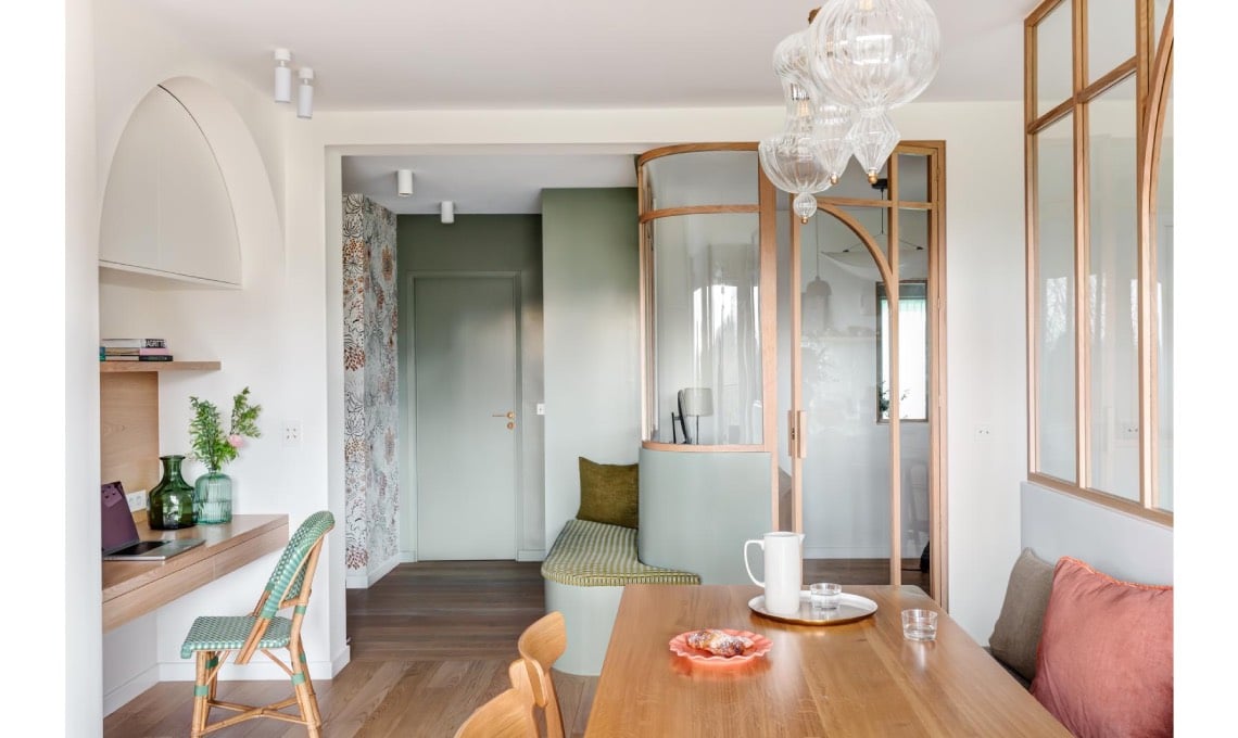 Un lessico architettonico rétro – archi, nicchie e séparé – per ridistribuire i metri quadri in modo nuovo, il mix di terracotta e acquamarina che dà vitalità e luce e 3 idee da copiare per lo studio!