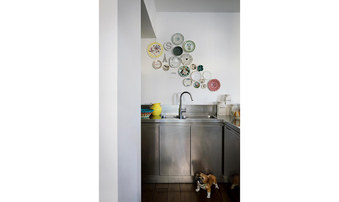 di viaggio e dei momenti speciali, orna come un murales la parete della cucina. Appesi sopra la cucina in acciaio piatti [Ilaria.I], [Anthropologie], [Bitossi Home].