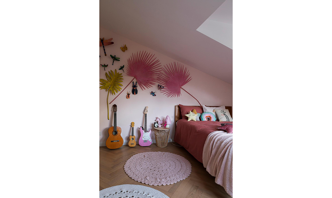 di oscurare i vetri con la carta da parati per nascondere i vestiti all’interno», racconta Sabina, «e per creare un match con la parete jungle del letto.
