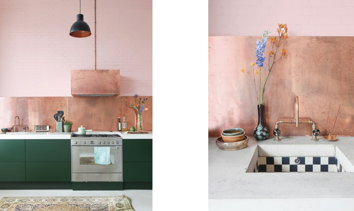 Rame, cemento e ottone: i materiali nobili creano lo stile della casa
