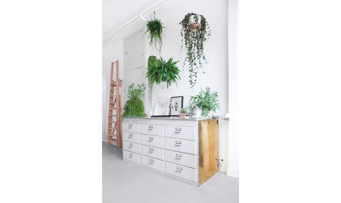 La proprietaria di casa ha molta sensibilità per il colore: usa nuance audaci come il rosa, il verde scuro, il giallo ocra che di solito non si ritrovano in interni in stile vintage e, comunque, mai insieme. Però il vero posto d’onore spetta ai materiali: al cemento seguono il rame, l’ottone, il marmo che cesellano mobili e dettagli e li rendono magnetici. Così ogni cosa riluccica e... sprizza personalità!