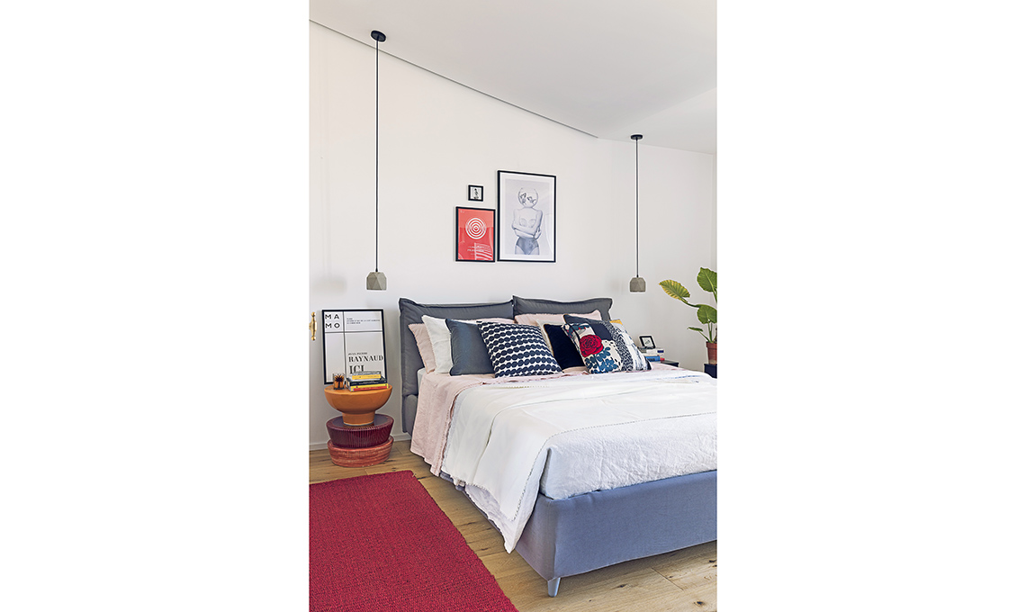 in cemento [ZMH su Amazon], tavolino [Made a Mano]. lenzuola [Chez Moi], cuscini [Marimekko], tappeto Coconutrug [G.T. Design].