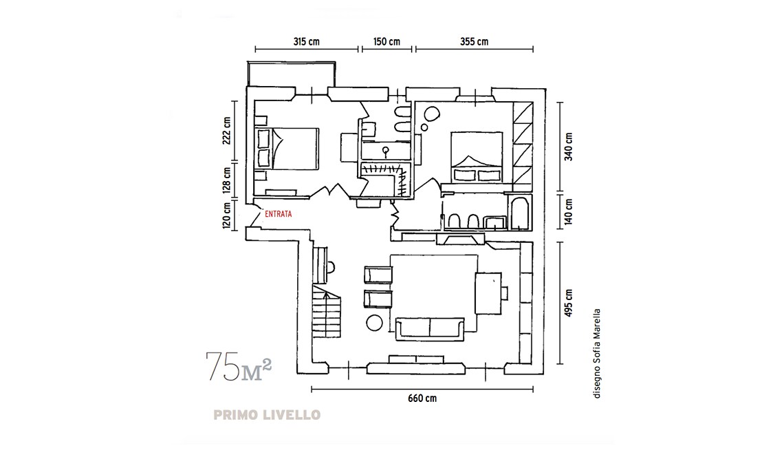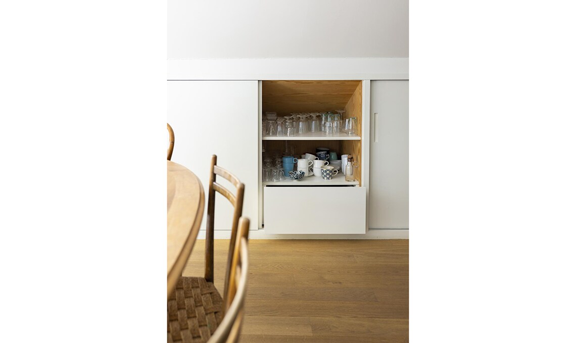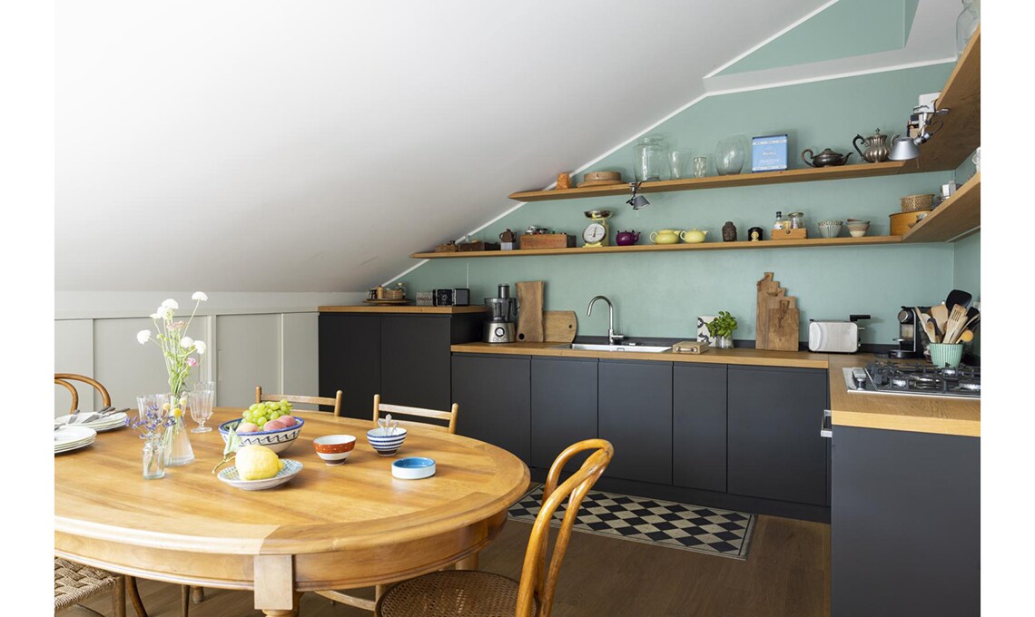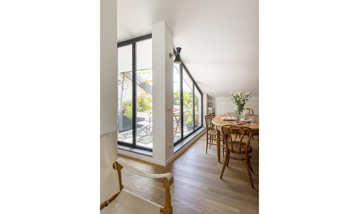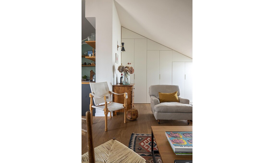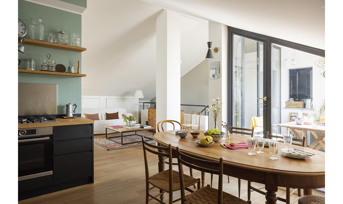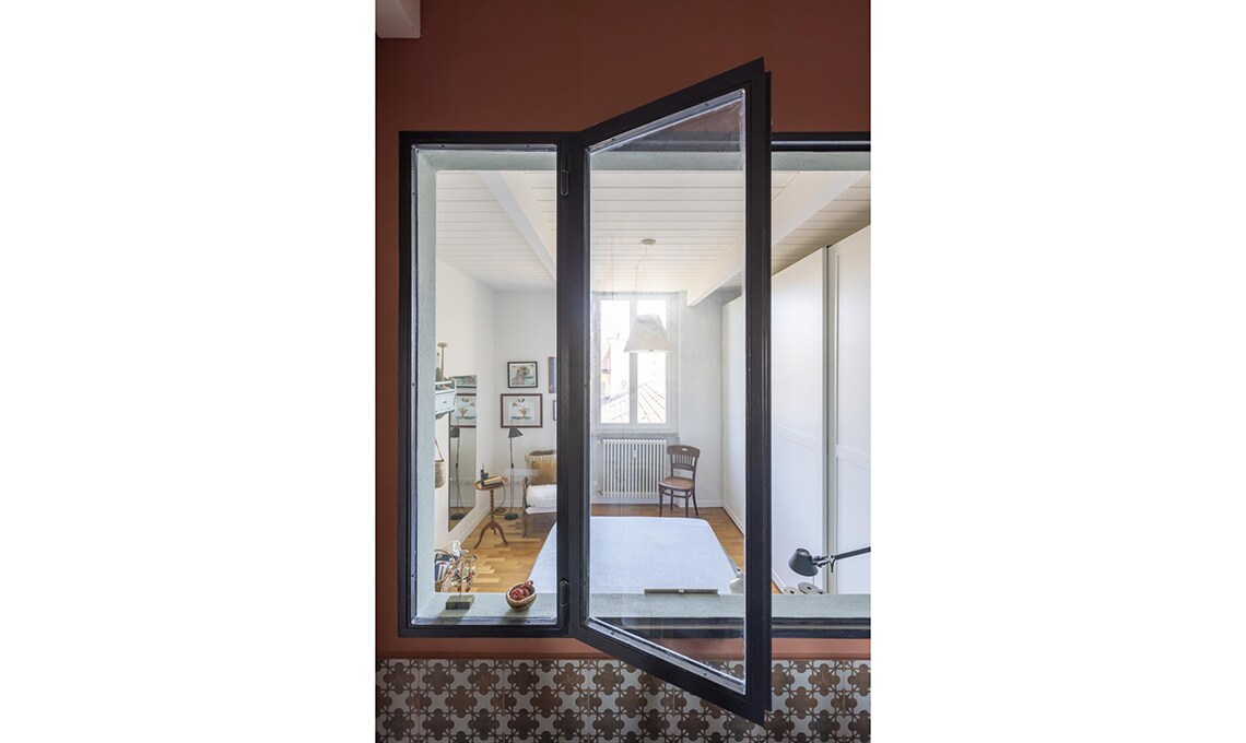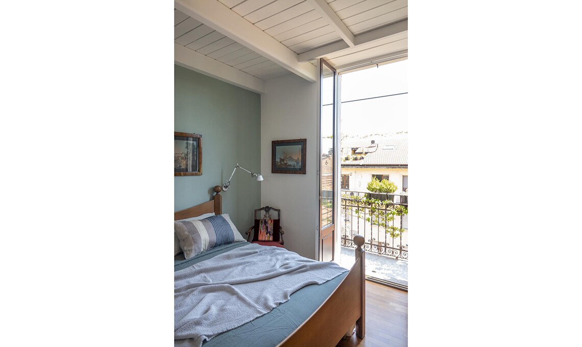 Dopo che i figli hanno lasciato il nido, Michele e Vittoria si ritrovano in un appartamento su due piani, in zona Bocconi a Milano, ormai inadatto alle loro esigenze. La loro vita domestica si concentra al livello inferiore, mentre la zona superiore, dove c’è un bel terrazzo incastonato tra i tetti, oggi è utilizzata soltanto come studio. Dilemma: cercare una nuova casa o piuttosto ristrutturare? Scelgono la seconda opzione e per i lavori si affidano all’architetto Betti Sperandeo, che con pochi, efficaci interventi cambia l’assetto dell’appartamento.