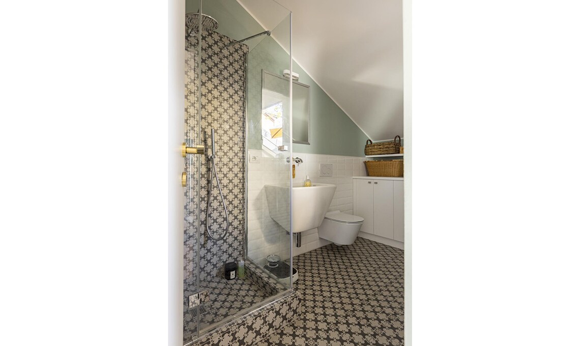 «La prima mossa è stata portare la zona living nel sottotetto, creando uno spazio fluido e conviviale» racconta l’architetto. L’open space ora ruota intorno al terrazzo, a cui è stata aggiunta una portafinestra che ha reso l'ambiente molto più luminoso. Il piano inferiore ospita due camere matrimoniali, entrambe con bagno en suite, e lo studio-salotto di Michele. Qui l’intervento determinante è stato l’inserimento della nuova scala in ferro e legno: più leggera e discreta della precedente, è diventata un elemento focale dello spazio.