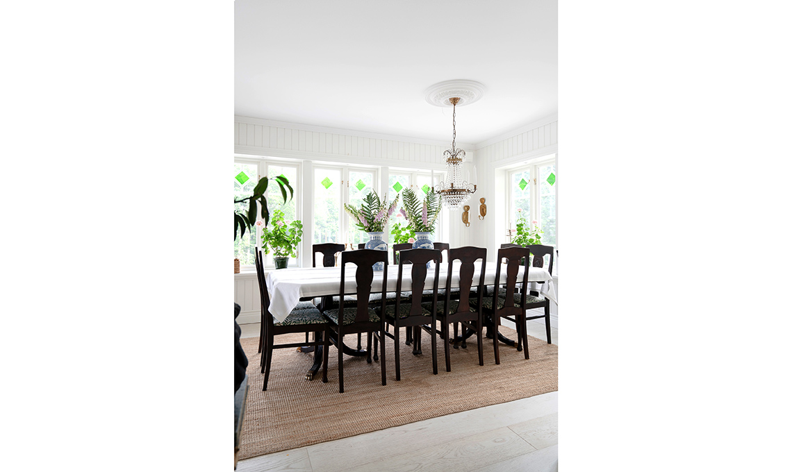 Le sedie sono state rivestite con un tessuto storico, Willow Bough [Morris & Co.]. Dove trovare dei tappeti di corda? Da [GT Design], di diverse misure, fatture e colori. Per vasi cinesi simili a quelli sul tavolo, cerca i modelli Annabelle, Ella e Lin su westwingnow.it
