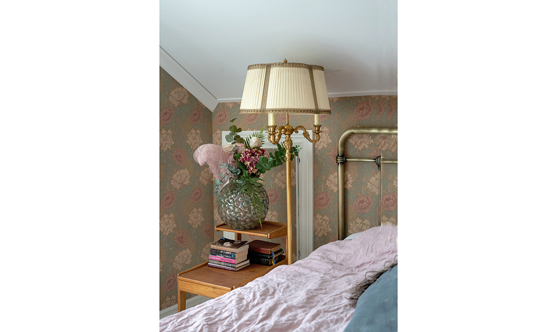 Carta da parati Chrysanthemum [Morris & Co.], copriletto [H&M Home], copripiumino in lino [Lovely Linen]. Trovi letti e testiere in ottone su subito.it