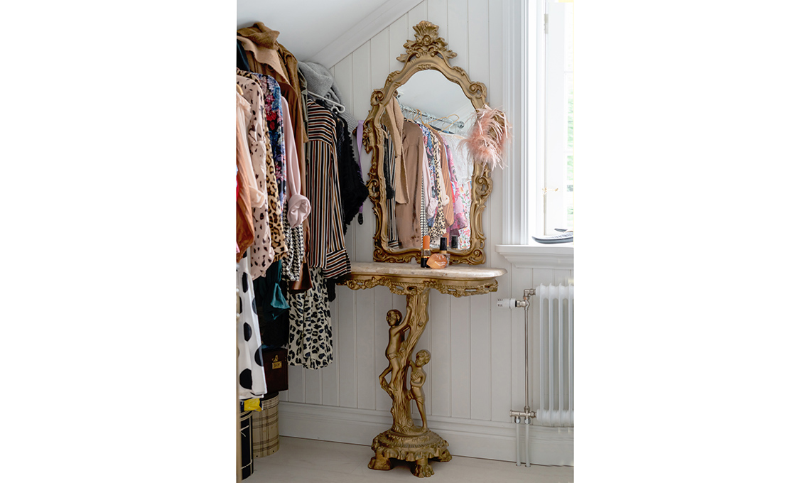La cabina armadio è decorata con un favoloso specchio