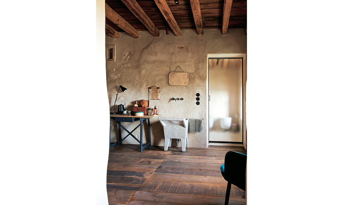 Qui Roberta ha scelto un modello ispirato agli antichi lavatoi che ricorda l’origine contadina della dimora.