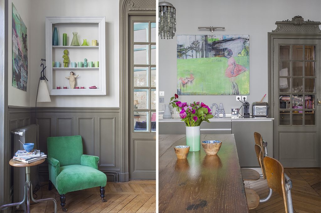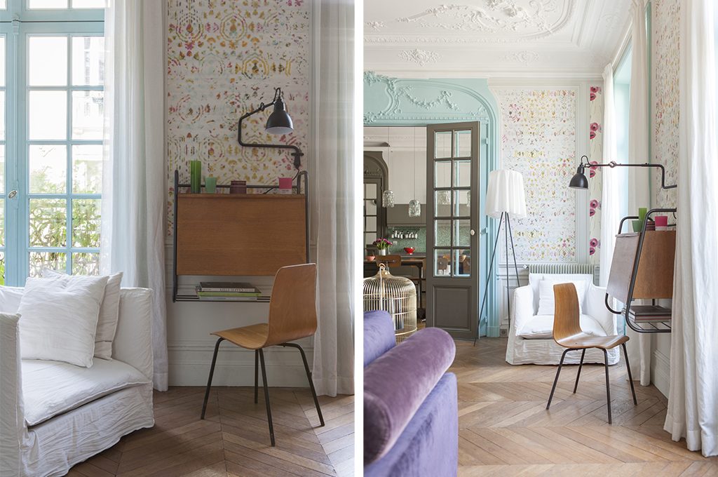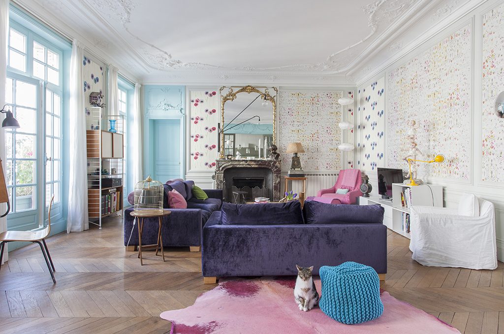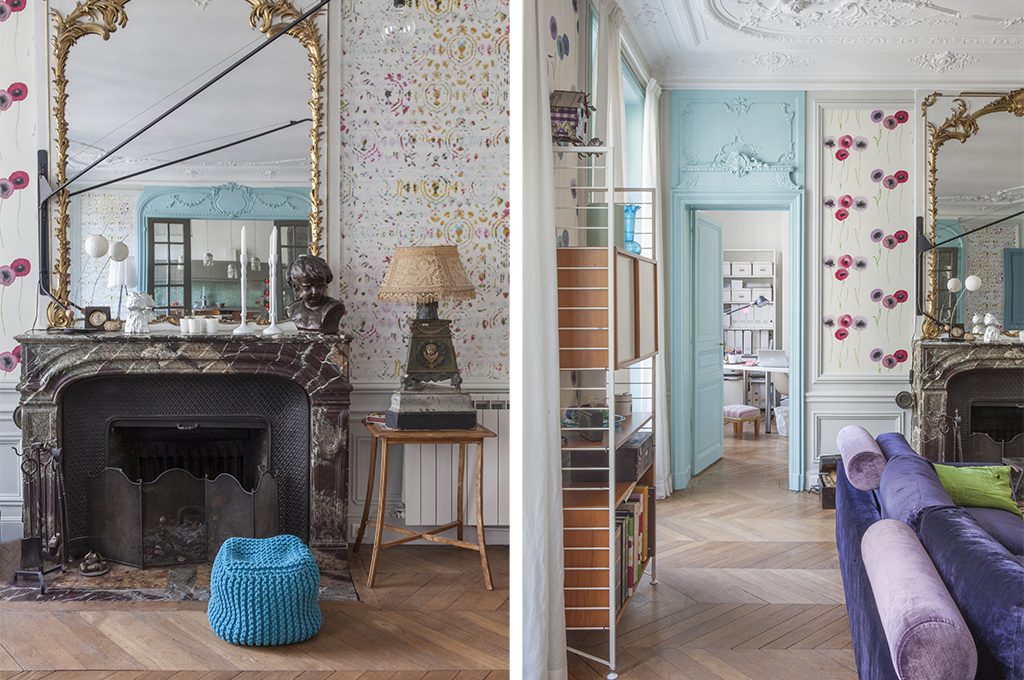 Un appartamento parigino in stile Haussmann arredato da un’ironica interior designer: carte da parati diverse, colori pastello, accostamenti imprevedibili. Ecco come arredare una casa d'epoca con brio