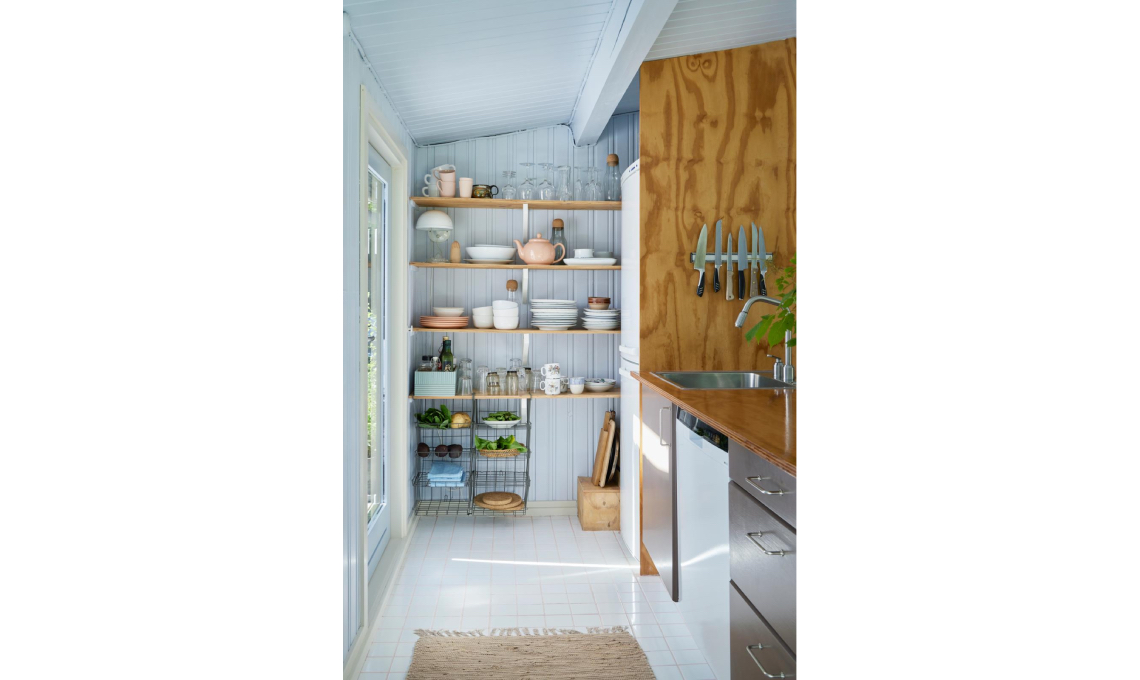 Quando Katrine ha acquistato questa casa a Gudmindrup Strand, località estiva a un’ora da Copenhagen, ha capito che ristrutturarla sarebbe stata una vera sfida. I 75 mq del cottage costruito negli Anni ’70 dovevano essere completamente ripensati per ospitare la loro famiglia di 5 persone e il budget era piuttosto ridotto... Grazie a furbe soluzioni salvaspazio e a un uso creativo del riciclo, l’interior designer ha centrato in pieno l’obiettivo.