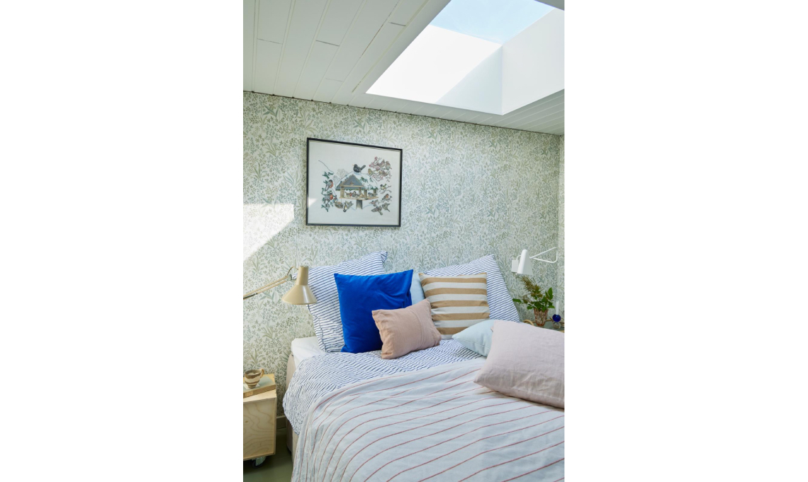 «Recuperare spazio è stato il mio mantra: ho sistemato la zona living nell’ex giardino d’inverno isolando le pareti e ho risolto la mancanza di posti letto creando al suo interno un’alcova: è così accogliente che i miei figli litigano per dormirci!» dice Katrine, che ha fatto gran parte della ristrutturazione da sé.