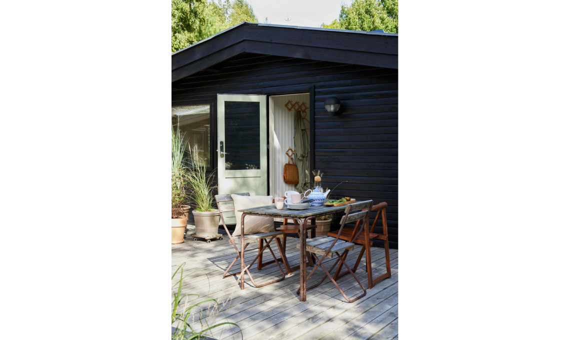 «In un giardino selvatico di specie autoctone arredi vissuti (vintage o riciclati) sono la scelta migliore perché rispecchiano l’anima eco e sostenibile del luogo» dice Katrine. Per i tavoli outdoor in legno guarda i modelli: Jules [Casa, cm 228x90], Nämmarö [Ikea, cm 140x75] e Ebbeskov [Jysk, cm 196x90].