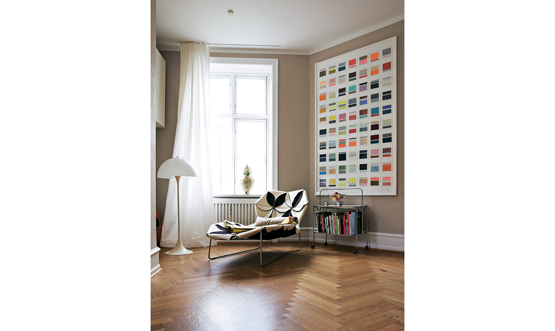 Chaise longue Antibodi, design Patricia Urquiola [Moroso], quadro ‘A Year Of Psychedelic Landscapes’ di Brigitte Lund.
