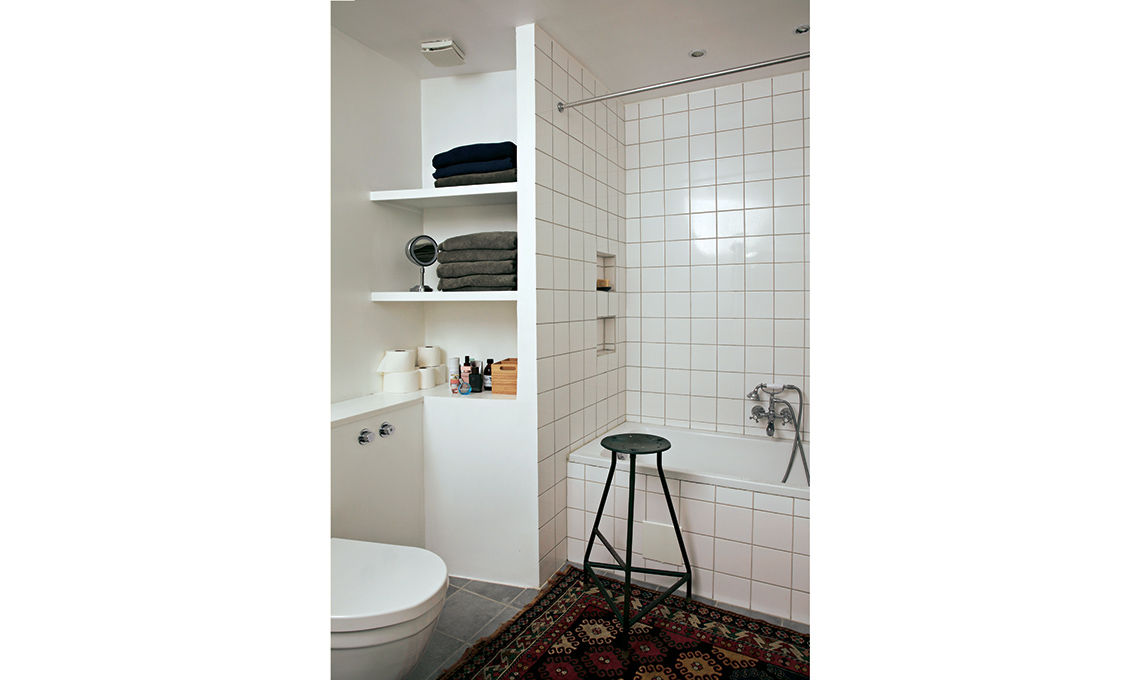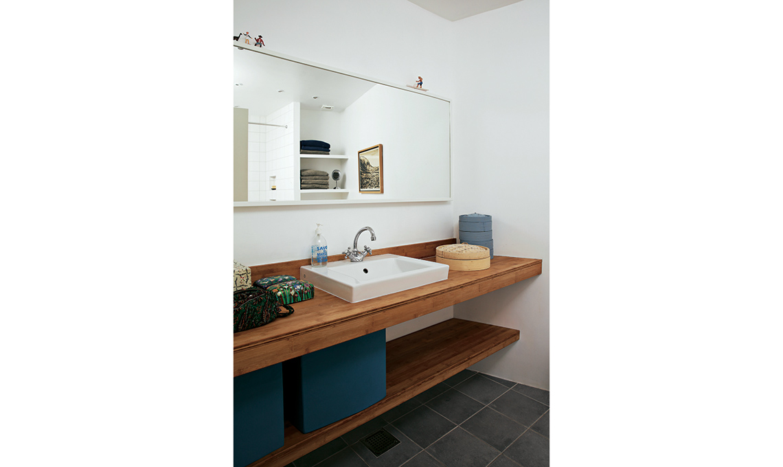 il lavandino e un mix di scatole per lo storage sostituiscono pensili e cassetti. L’idea décor da copiare? I cestelli di bambù per cuocere i ravioli che, dipinti, diventano scatole per i prodotti beauty.