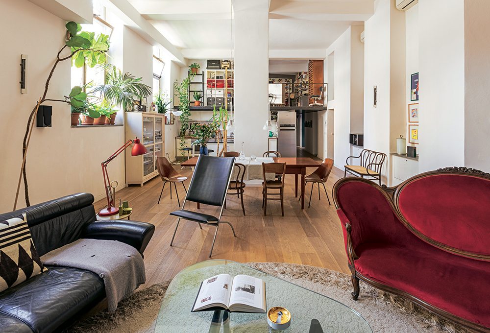 Dividere uno spazio open... senza dividerlo? Si può! Qui sono due stili contrapposti a creare lo stacco: