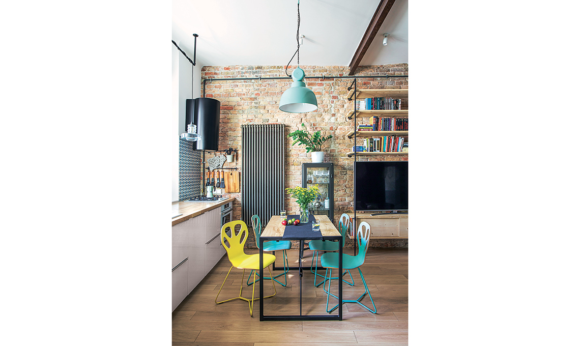 «Sì ai mattoni e alla putrella portante di ferro che taglia il soffitto» racconta Kamila. «Però volevamo addolcire i tratti più grezzi dell’industrial style». Risulta perfetta la scelta dei toni pastello per lampade e arredi e di cuscini e tappeti grafici, ma colorati.