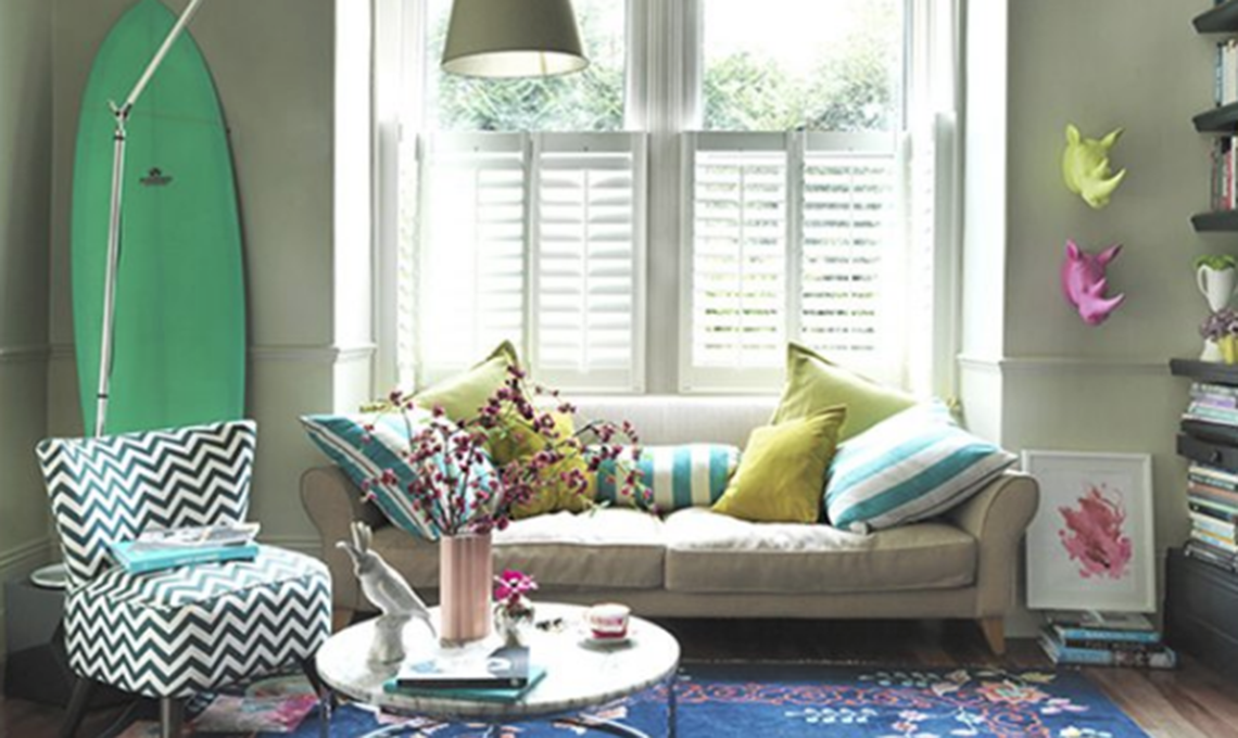 La tavola da surf nel living dice già tutto: portata direttamente dalla California dove Lucy ha abitato con la sua famiglia, è in un verde vitaminico, perfetto con i colori e lo stile informale di questa casa, in centro a Londra. La loro storia è insolita: avevano appena comprato questa residenza Vittoriana, nella zona di West Acton a Londra, quando il marito Dominic decide di aprire la sua società anche in California. Tutti l’hanno seguito! La casa londinese viene sistemata al meglio per essere affittata, e loro sono andati in affitto dall'altra parte dell'oceano, a Los Angeles. «È stata un’esperienza straordinaria» racconta Lucy «e mi sono innamorata subito del California style, dandomi allo shopping sfrenato nei negozi di Abbott Kinney Boulevard e di Venice Beach». Finito quel periodo, si rifanno i bagagli (molti di più rispetto all'andata) e si torna a Londra: qui Lucy ha mixato tutto ad arte. Il risultato è a dir poco eclettico, pieno di energia: grazie all'esperienza di Lucy, tutto ha magicamente trovato la giusta collocazione in un mix di stili originale e unico. Il ritmo di vita della California, i colori e la luce ora sono parte integrante di tutta la famiglia e Lucy osa toni vistosi, tessuti grafici bicolori e cose bizzarre. Il suo stile è frizzante e pieno d’energia e vivacizza la casa d’epoca. E ci regala un suo piccolo trucco da interior stylist: «nascondete con tende, specchi ecc... i dettagli che stonano con il vostro gusto estetico, come le prese o un infisso non ‘in forma’». È proprio vero... Se si ricerca un look ben definito per la propria casa, anche il minimo dettaglio fuori posto finisce per vanificare il lavoro fatto.