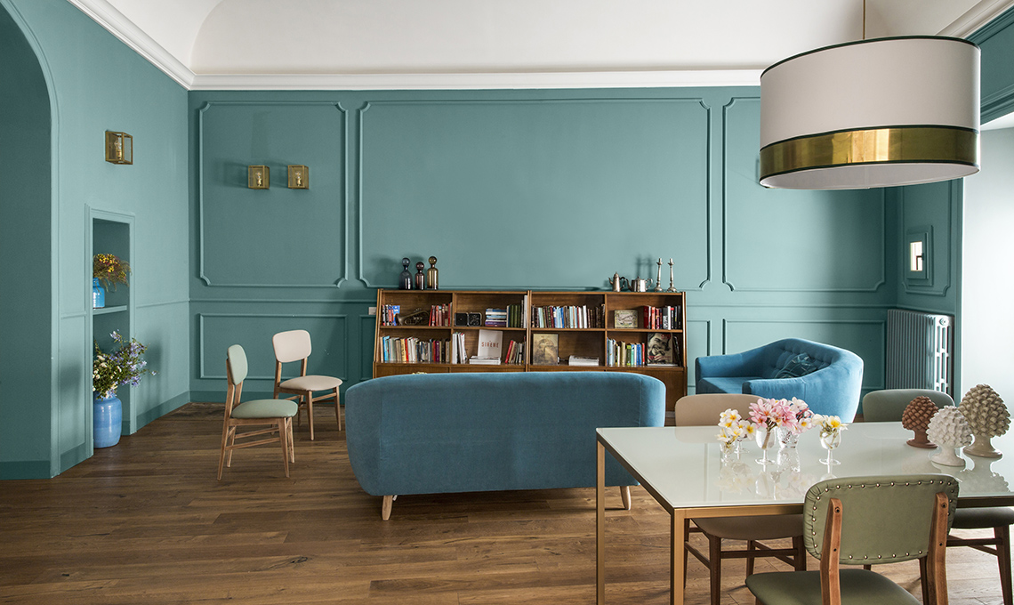 La vera sfida del progetto, affidato allo studio Lyga delle sorelle Lycia e Gaia Trapani, è stata aggiornare i dettagli architettonici classici con una rilettura moderna: tra i vari innesti di decori antichi e materiali nuovi, il colore che invade tutte le stanze regala la sferzata finale.