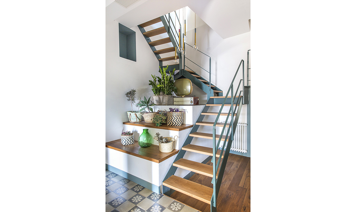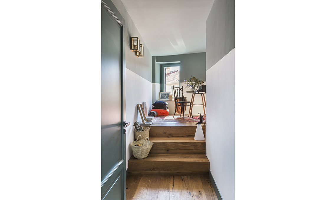 La gradinata in muratura nasconde la volta del corpo scala del palazzo. Il progetto dello studio Lyga l’ha al tempo stesso minimizzata e valorizzata con i piani in legno.
