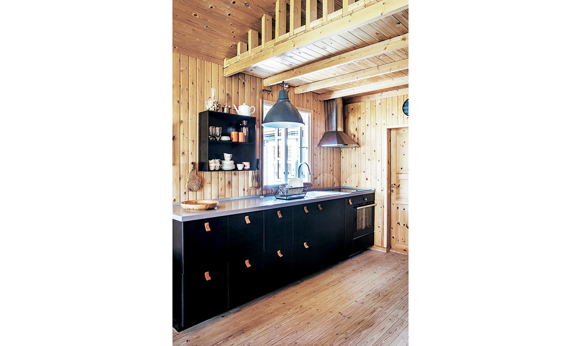 Osare una cucina total black in un open space foderato di legno può sembrare una scelta azzardata, ma dettagli studiati come le maniglie in pelle l’hanno trasformata nel punto di forza del living: accogliente e allo stesso tempo molto contemporaneo.