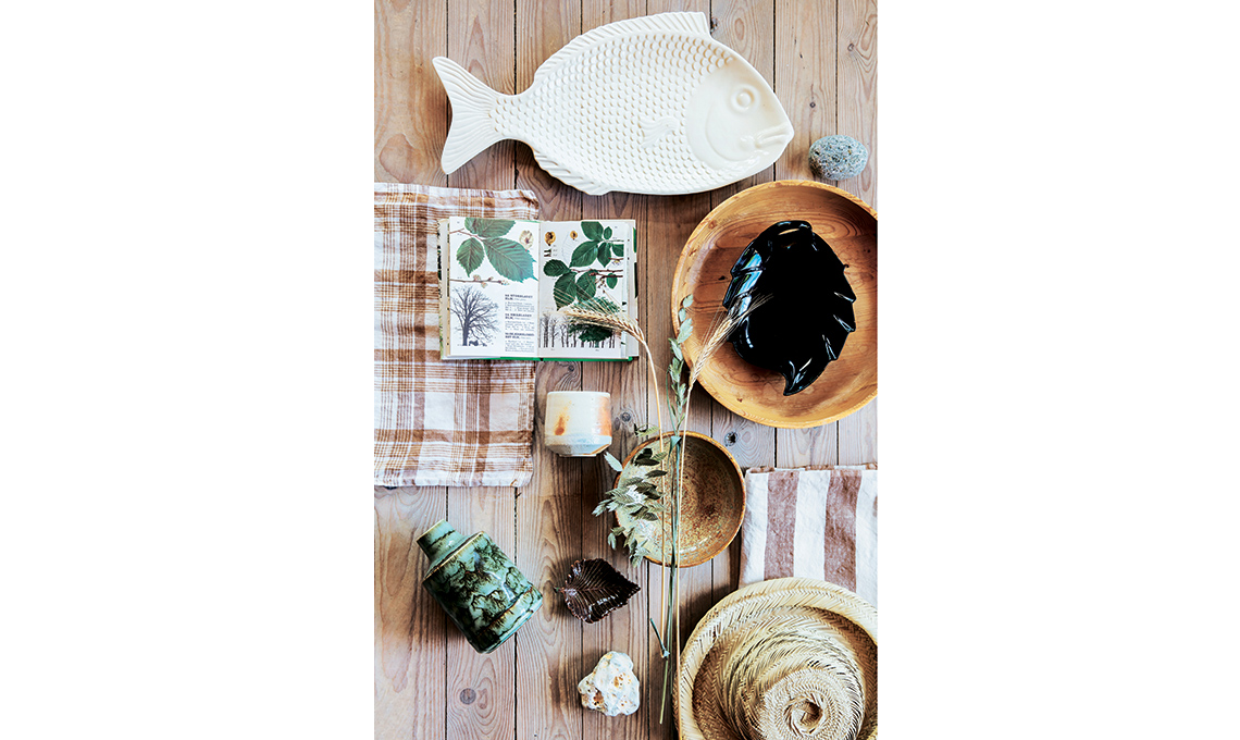 di ispirazione, lei ama portarla all’interno sottoforma di ciottoli raccolti sulla spiaggia, libri di botanica, ciotole di legno e ceramiche a tema marino.