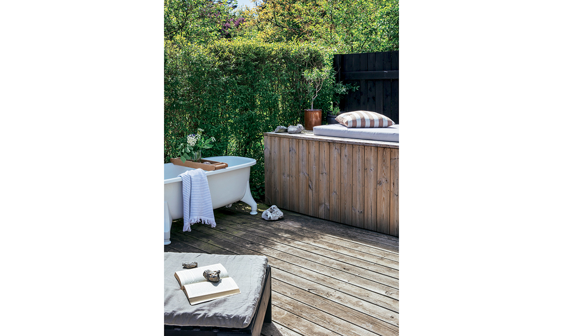 ...vasca! Averne una all’esterno era il sogno di Susanne e Mads. «È l’ideale per rilassarsi dopo le passeggiate sulla spiaggia e la usiamo anche d’inverno» sorride Susanne. Ti piace l’idea?