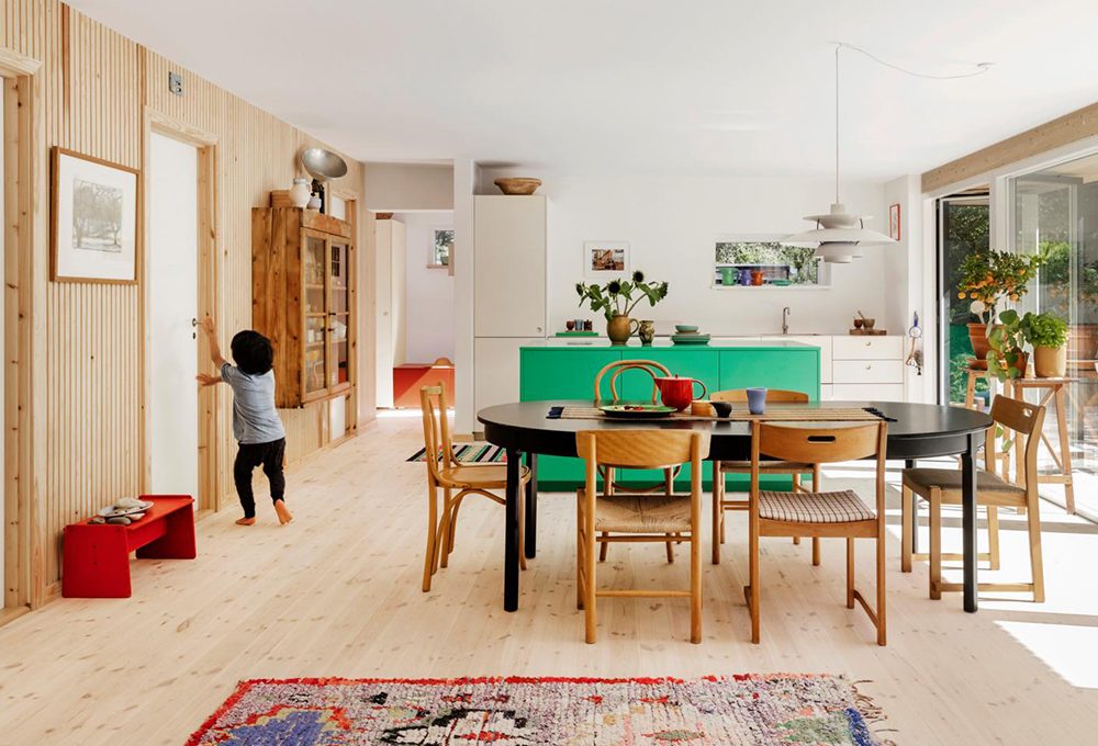 Il giardino d’inverno si presta bene a ospitare la cucina: sviluppa le basi sotto la superficie vetrata, prevedi un miscelatore pieghevole e un piano cottura con cappa integrata, in grado di aspirare in modo efficace il vapore sviluppato, o sposta i fuochi direttamente su un’isola centrale. Sospensione Primevère [Maison Sarah Lavoine]. Cucina [Cerutti Création]. Brocche e piatti [Casa Lopez].