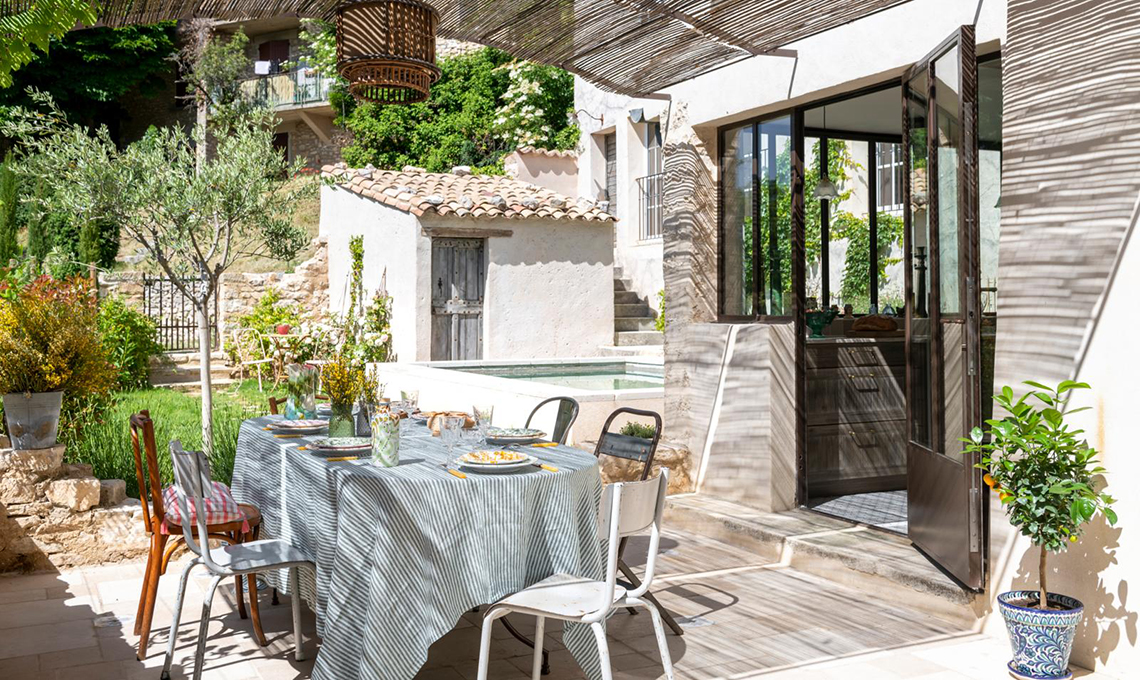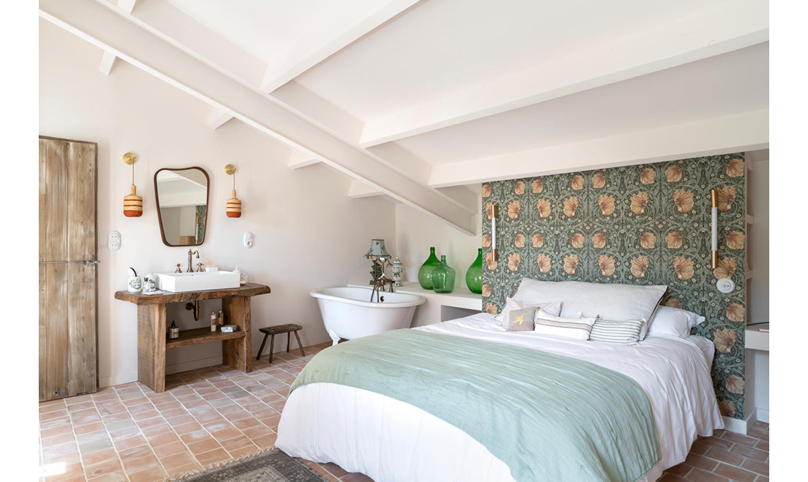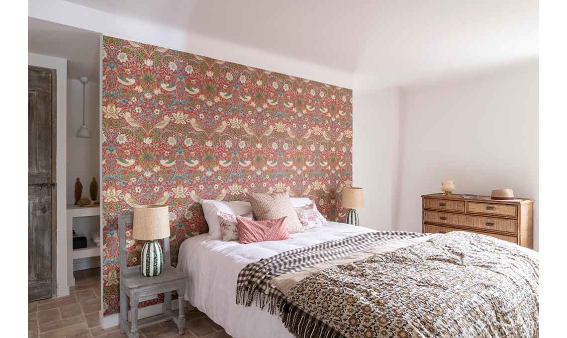 Nel suggestivo borgo di Monieux, la casa di Florence sperimenta lo stile da campagna francese con un Twist eclettico: le wallpaper ottocentesche di William Morris.