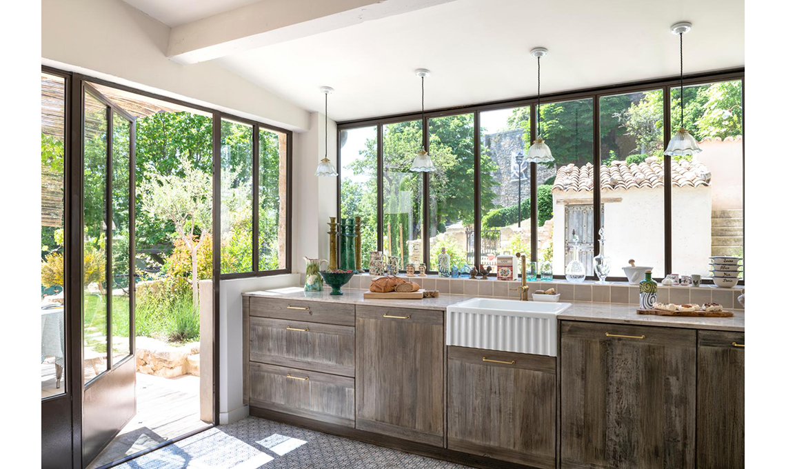 L’interno sembrava più un padiglione moderno che una tipica fattoria, quindi l’obiettivo è stato recuperare il sapore provenzale tenendo le tracce interessanti e aggiungendo quelle che si erano perse, come le piastrelle rétro, i muri di pietra viva o il giardino d’inverno.