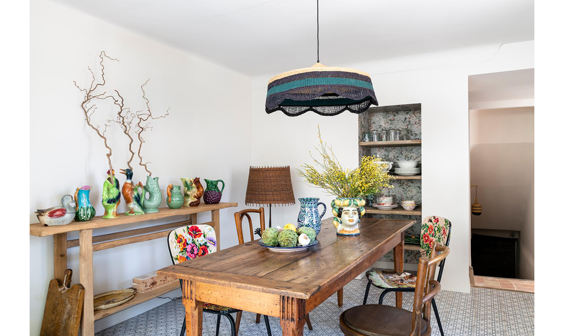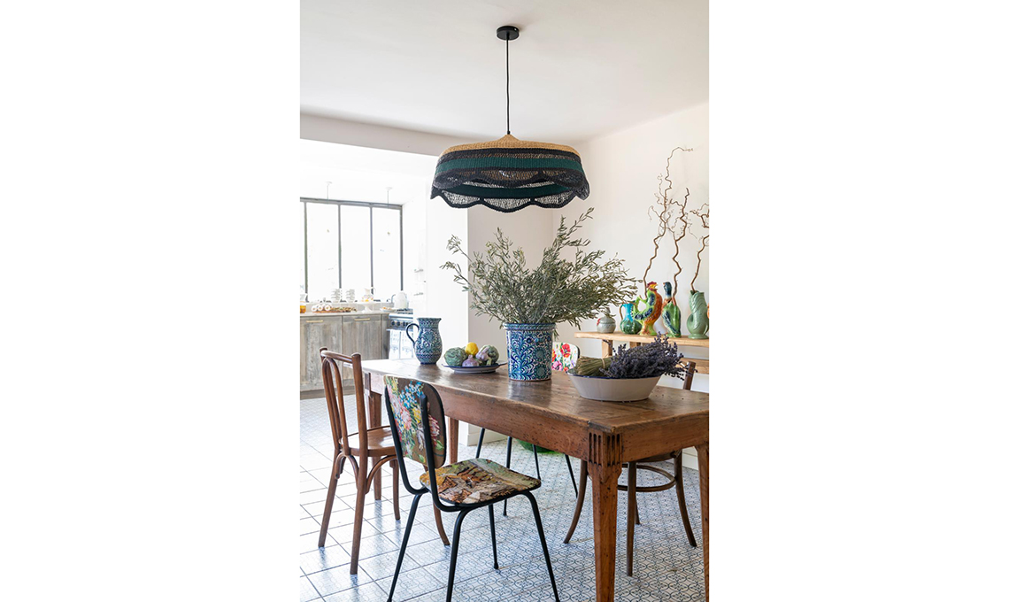 La sala da pranzo condensa in maniera magistrale lo stile di questa casa: provenzale, sì, ma con incursioni boho-chic, a iniziare dalle sedie rivestite di tela vintage di @nathaliegagneuxcreations.