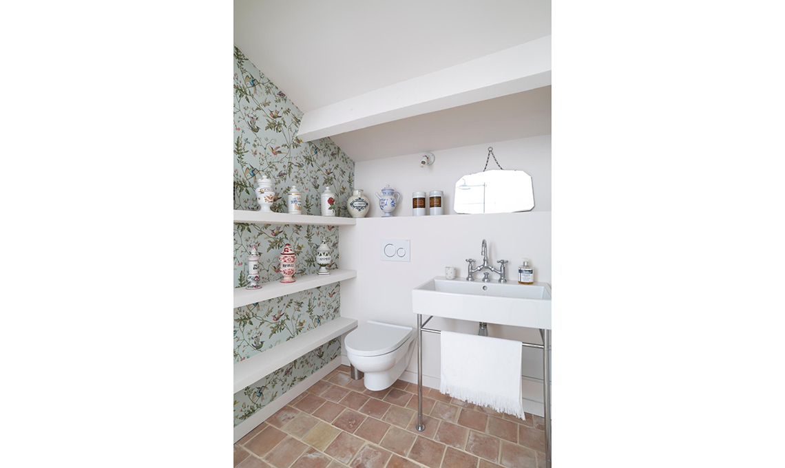 Ogni nuova scoperta mi fa venir voglia di rifare il bagno!» racconta la proprietaria. Wallpaper Strawberry Thief [Morris & Co.], lampade Palmaria [Maison Sarah Lavoine], biancheria [Merci Paris].