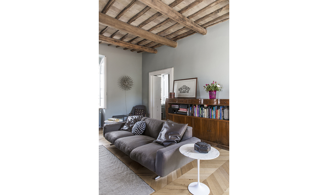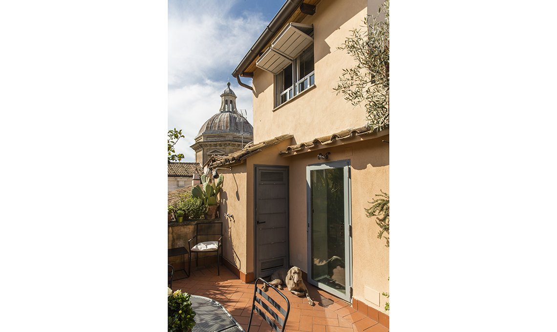 CasaFacile > Case > Ispirazioni > Travi a vista, mobili in radica e design contemporaneo in un appartamento sui tetti di Roma