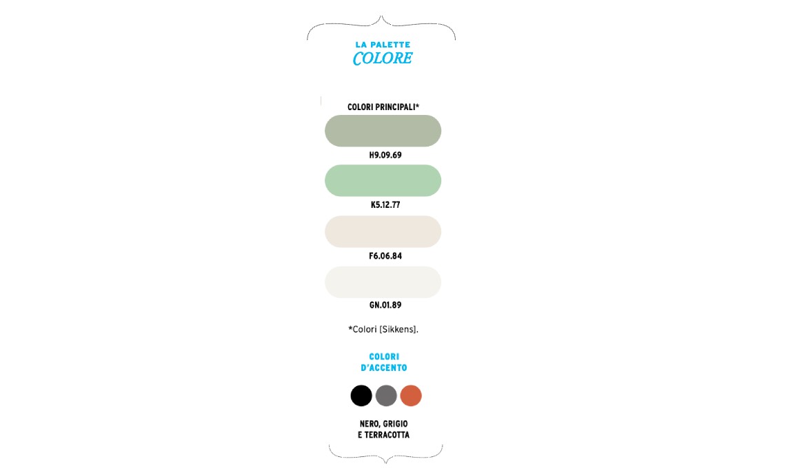 Il mood vintage guidato dal verde salvia delle pareti e delle piastrelle in cucina, con il menta della porta di fine ’800, è stemperato dalla sfilata dei toni neutri. A contrasto, ma in palette, il tocco di terracotta e l’eleganza senza tempo del nero.