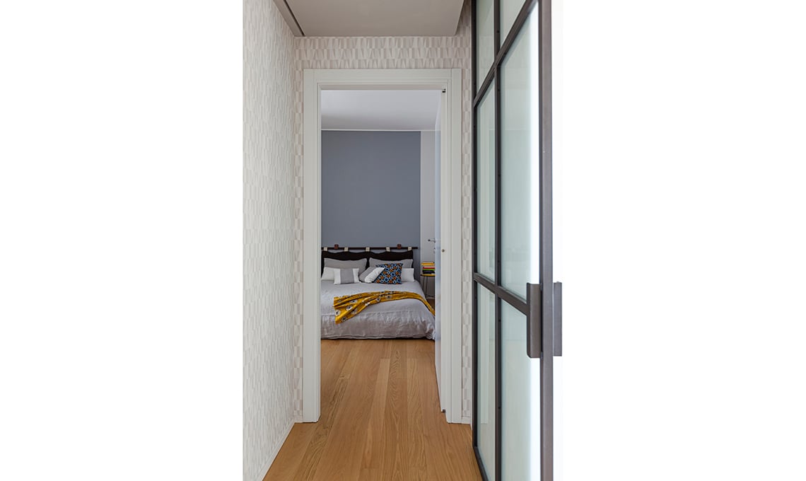 Nel disimpegno, tappezzeria Prisma con