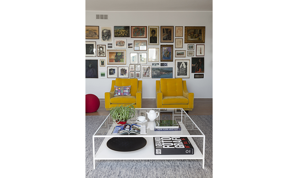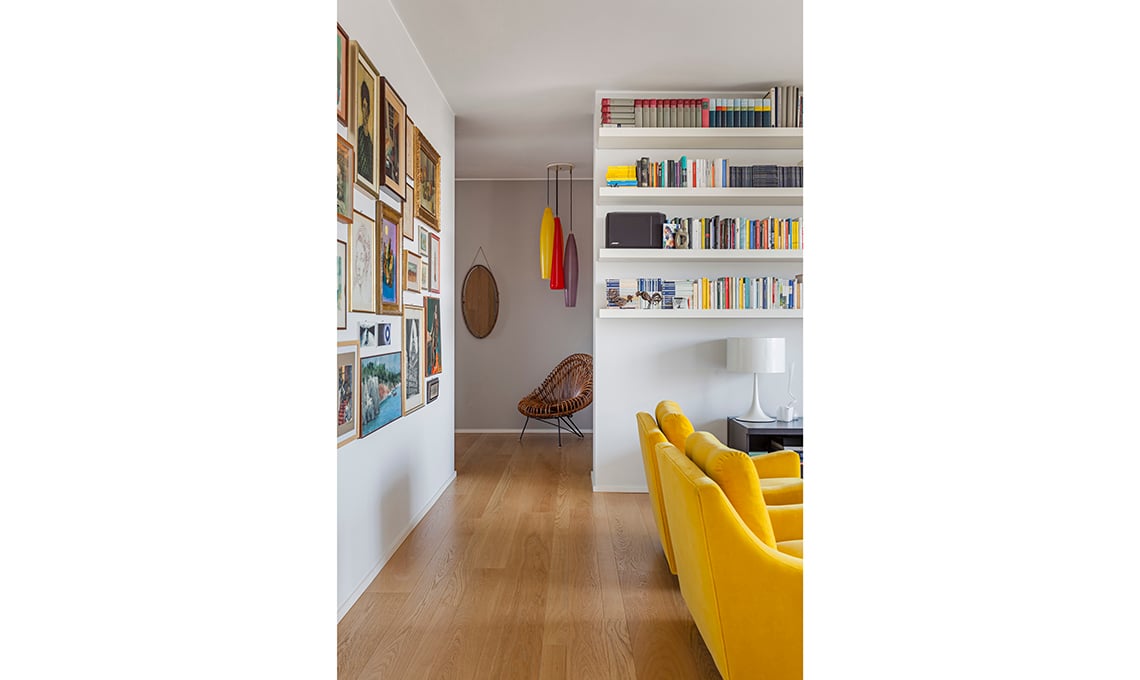 Le poltrone Anni ’60 erano dei genitori; Isabella le ha rivestite in velluto giallo.