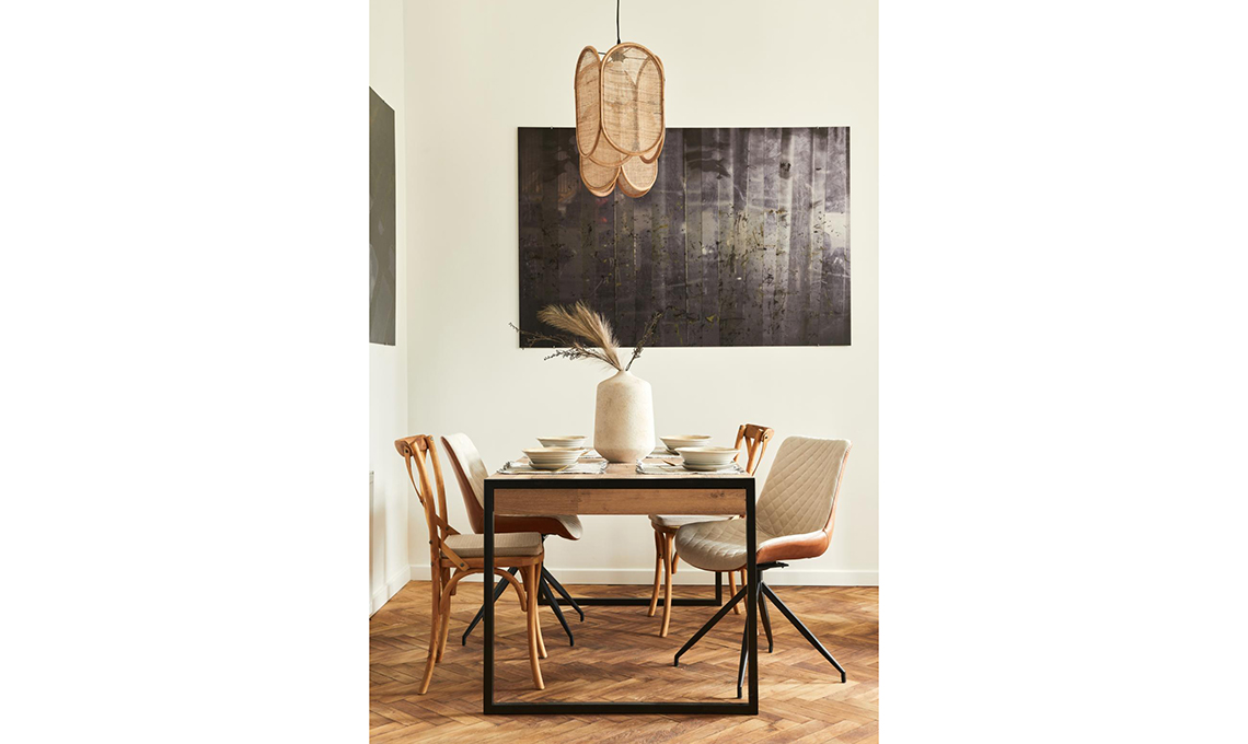 Come unire stili diversi? Il trucco è cercare per ogni stile arredi che in qualcosa si avvicinino agli altri, evitando le dissonanze. Le opere fotografiche di Timothy Lekler danno un twist contemporaneo alla zona pranzo.