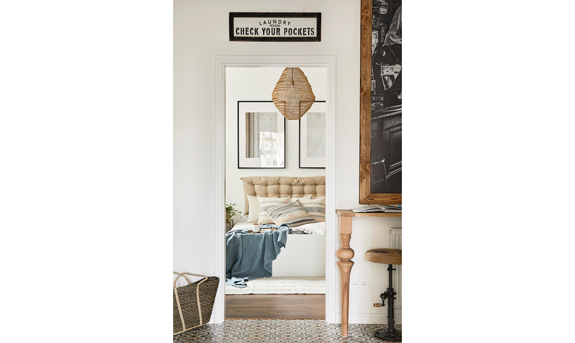 Altro che zona di passaggio! Grazie a una carta da parati (la trovi nella shopping list) che crea l’illusione di affacciarsi sullo scalone di un palazzo nobiliare perfettamente intonato alle modanature delle porte d’epoca, l’ingresso è stato trasformato in un super scenografico preludio che introduce allo stile elegante dell’appartamento. Nota i dettagli: le applique in ottone si abbinano allo stile della carta da parati, mentre la panchetta in rattan smorza l’atmosfera aulica e introduce una nota di freschezza mediterranea. Panchetta simile a Riolut [Sklum], Soa [Maisons du Monde], Le Roi [Norr11].