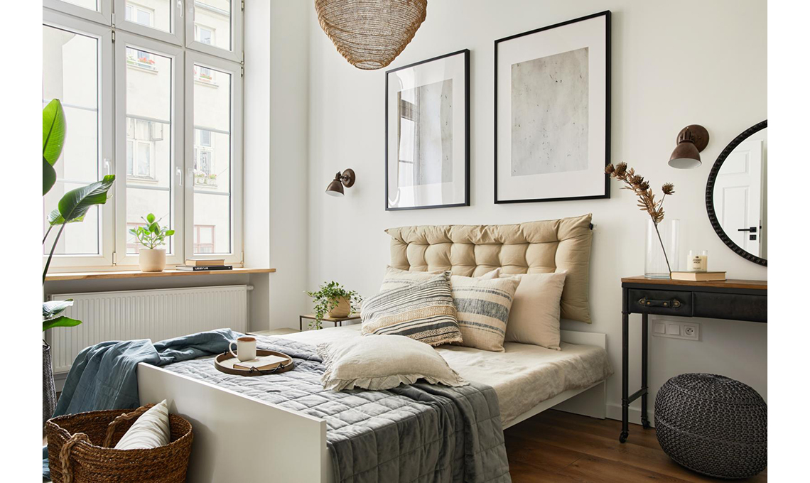 ni Per riporre quelli che non servono quando vai a dormire, tieni un borsone in paglia intrecciata ai piedi del letto. Le