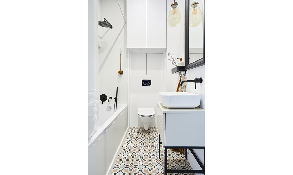 Chi ha detto che il bianco è il colore più ovvio per il bagno? Małgorzata ha reso raffinata questa scelta minimal abbinandolo alla rubinetteria nera, ricercata e attuale. Il tocco rétro è affidato alla sospensione in vetro soffiato che richiama lo stile delle cementine e allo specchio con cornice sagomata. Sopra il wc è stata ricavata una capiente armadiatura sospesa su misura. Se cerchi rubinetti neri guarda: Velis e Yoyo [Nobili], Jo [Paffoni], Diametro 35 Cross [Ritmonio], East Side [Cristina Rubinetterie], Fozzie [Cerasa], Lundskär [Ikea], Fluid [Fima Carlo Frattini] e Oxo [Porcelanosa].