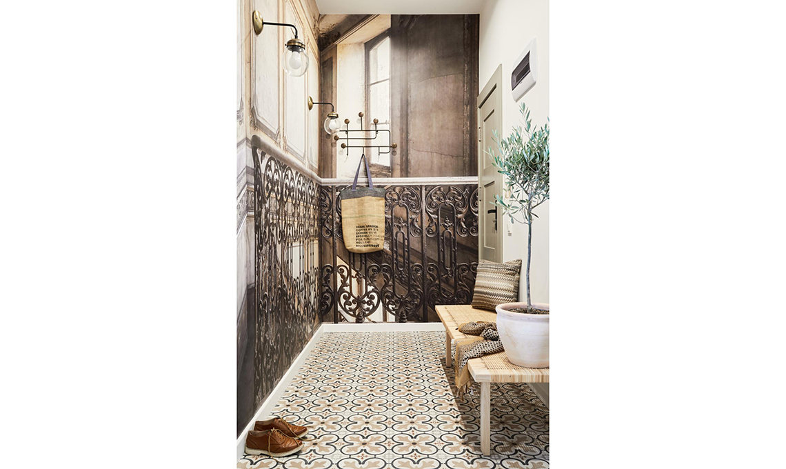 Parquet a spina e cementine sono la scelta ideale negli appartamenti d’epoca perché creano lo sfondo perfetto per spaziare nello stile dell’arredamento, dal classico al contemporaneo. Carta da parati trompe-l’oeil Staircase [Rebel Walls]. Trovi cementine in grès nei cataloghi di [Terratinta Group], [Marca Corona], [Marazzi] e [Ceramica Sant’Agostino].