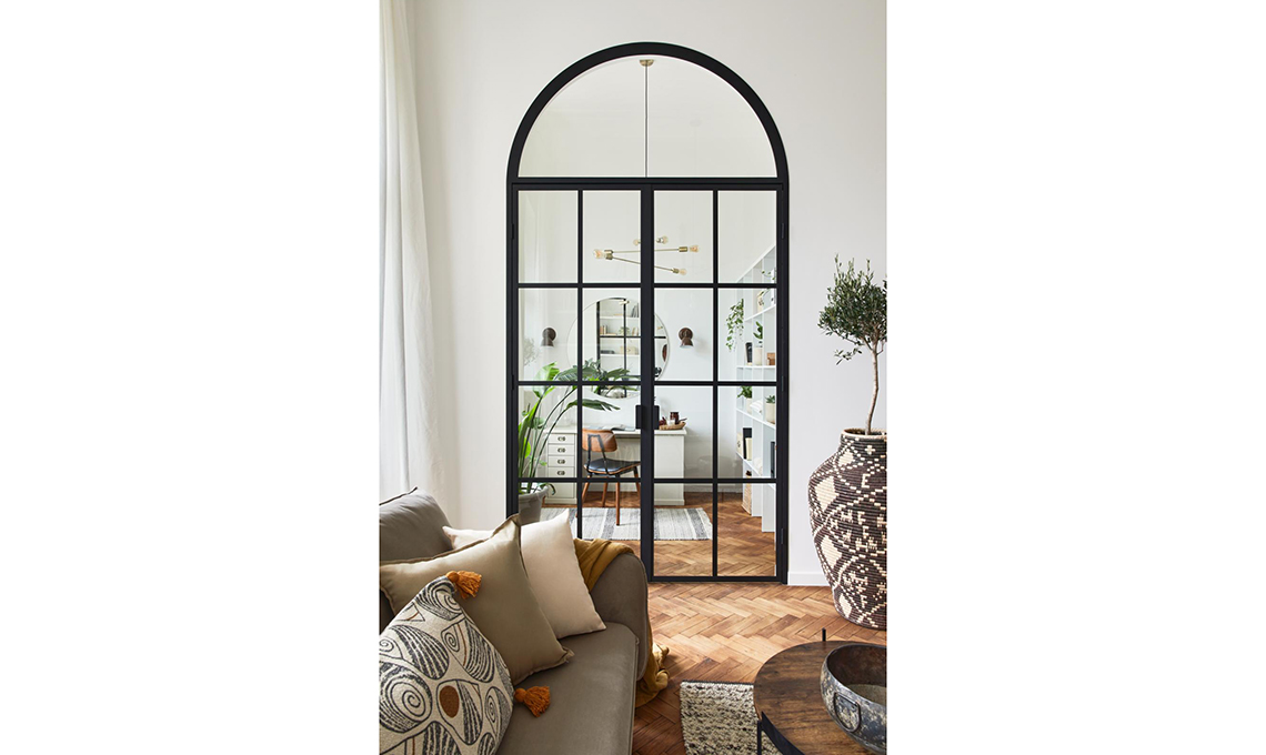 «Nel living volevo creare un’area di lavoro separata: lo spazio non mancava, il problema era non spezzare il ritmo delle tre finestre ad arco» racconta Małgorzata Wojdal.